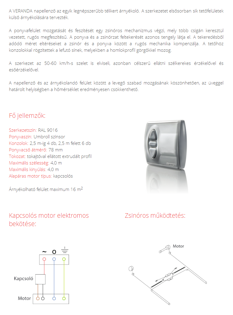 A Veranda (télikert árnyékoló) divatos és hasznos megoldás családi házak teraszainak, télikertek üvegfelületeinek és egyéb tetőszerkezeteknek az árnyékolására.